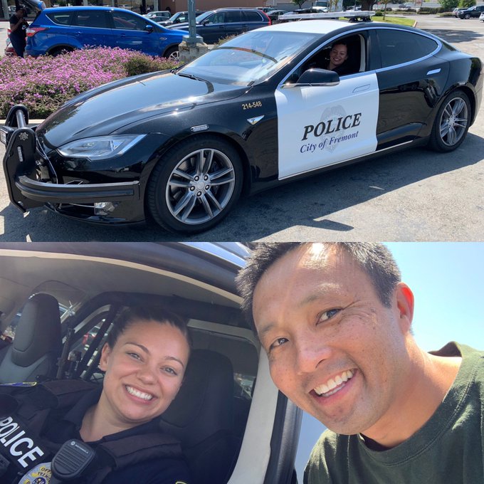Wow!!!!!! I remember previewing the @FremontPD planning to roll out their @Tesla patrol car and here it is!! Saw it drive by and stopped Officer Tatola! She says people can’t believe it and want to take pics of it. Can’t figure out why :). @kron4news